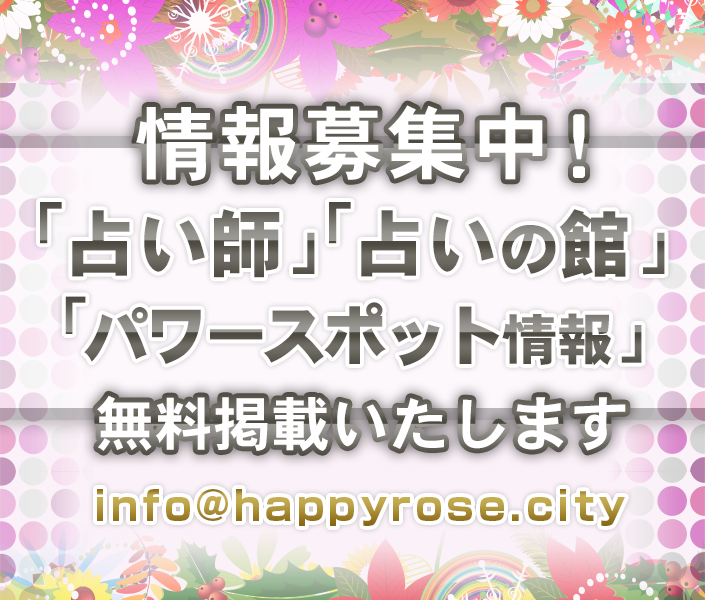 「ハッピーローズ全国地域占いガイド」では、都道府県別に当たる占い師や霊能者、そして地域ごとの占い事情などを様々なスポットと共にご紹介いたします!